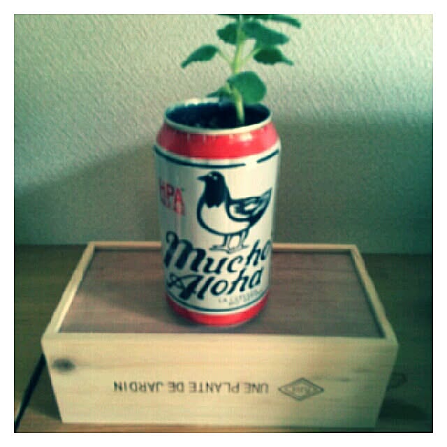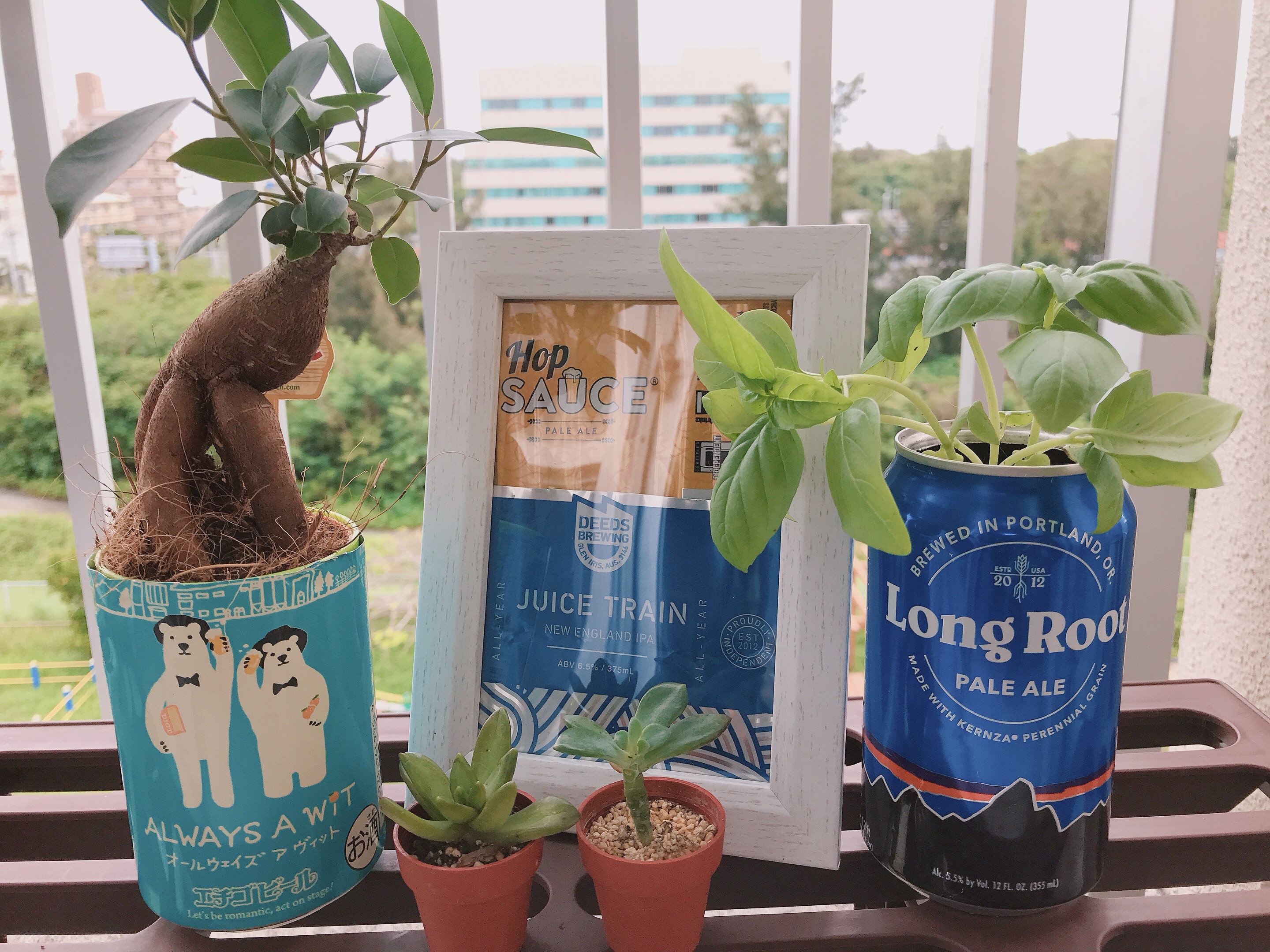 かわいいクラフトビールの空き缶を観葉植物用の鉢に改造ベニテングダケ.com はなれ生活情報。