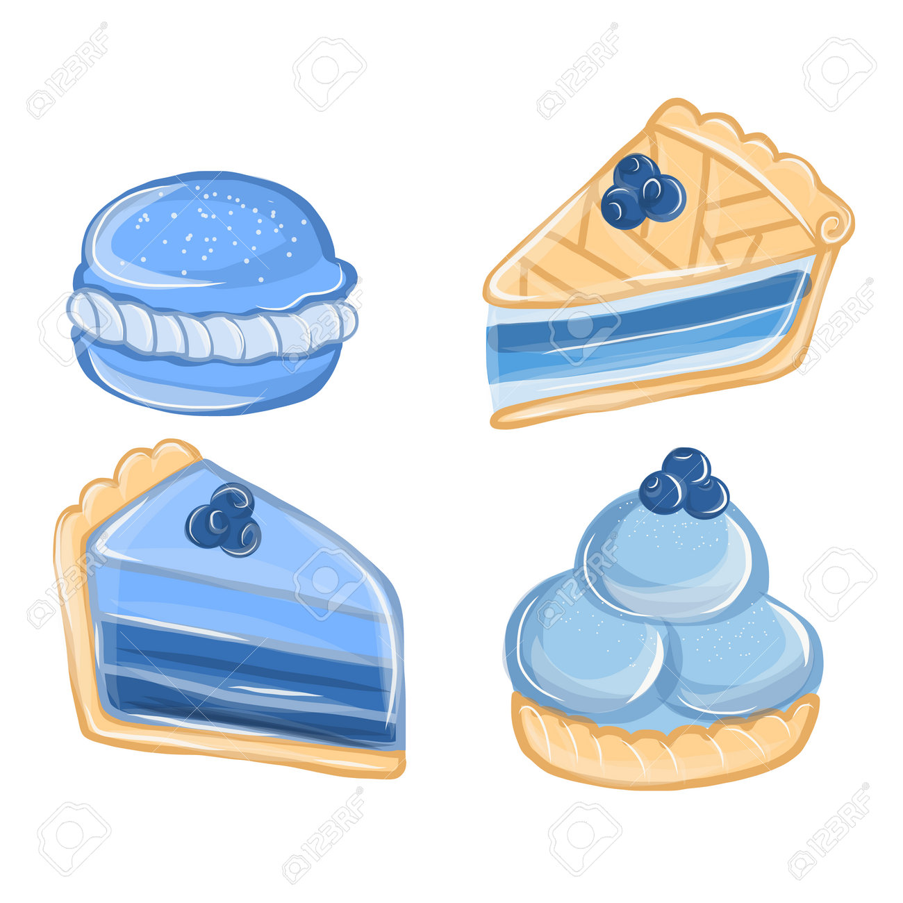青い食べ物ベクトルブルーベリーと青みがかったケーキと青みがかった飲み物のイラストと甘いデザートアクアマリンドーナツまたは青みがかったアイスクリームの白い背景で隔離のシアンセットPremiumベクトル素材。