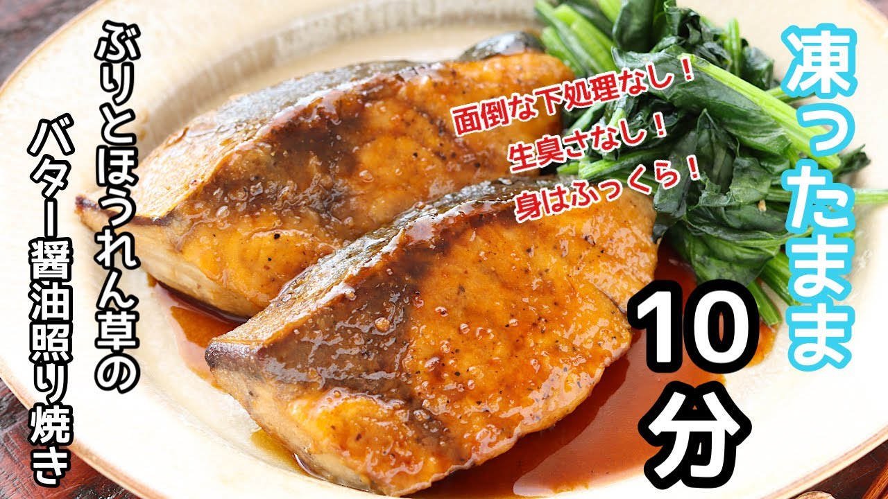 凍ったまま10分で!ぶりとほうれん草のバター醤油照り焼き。