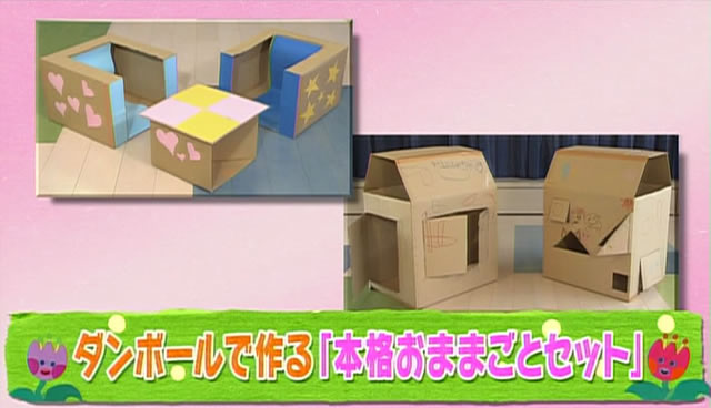 ダンボールの手作りおもちゃ「本格おままごとセット」子育てに役立つ情報満載 すくコムNHKエデュケーショナル。