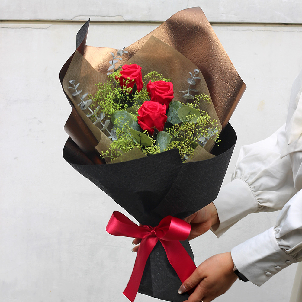 シャインローズブーケ ブラック 誕生日 結婚記念日 プロポーズ バラ 花束 ピアノ発表会 送別会 ホワイトデー 花そのまま飾れる花束 花瓶不要スタンディングブーケ おしゃれ バラ花束 フラワー 送料無料 奥様 彼女 生花花&雑貨フロレゾン。