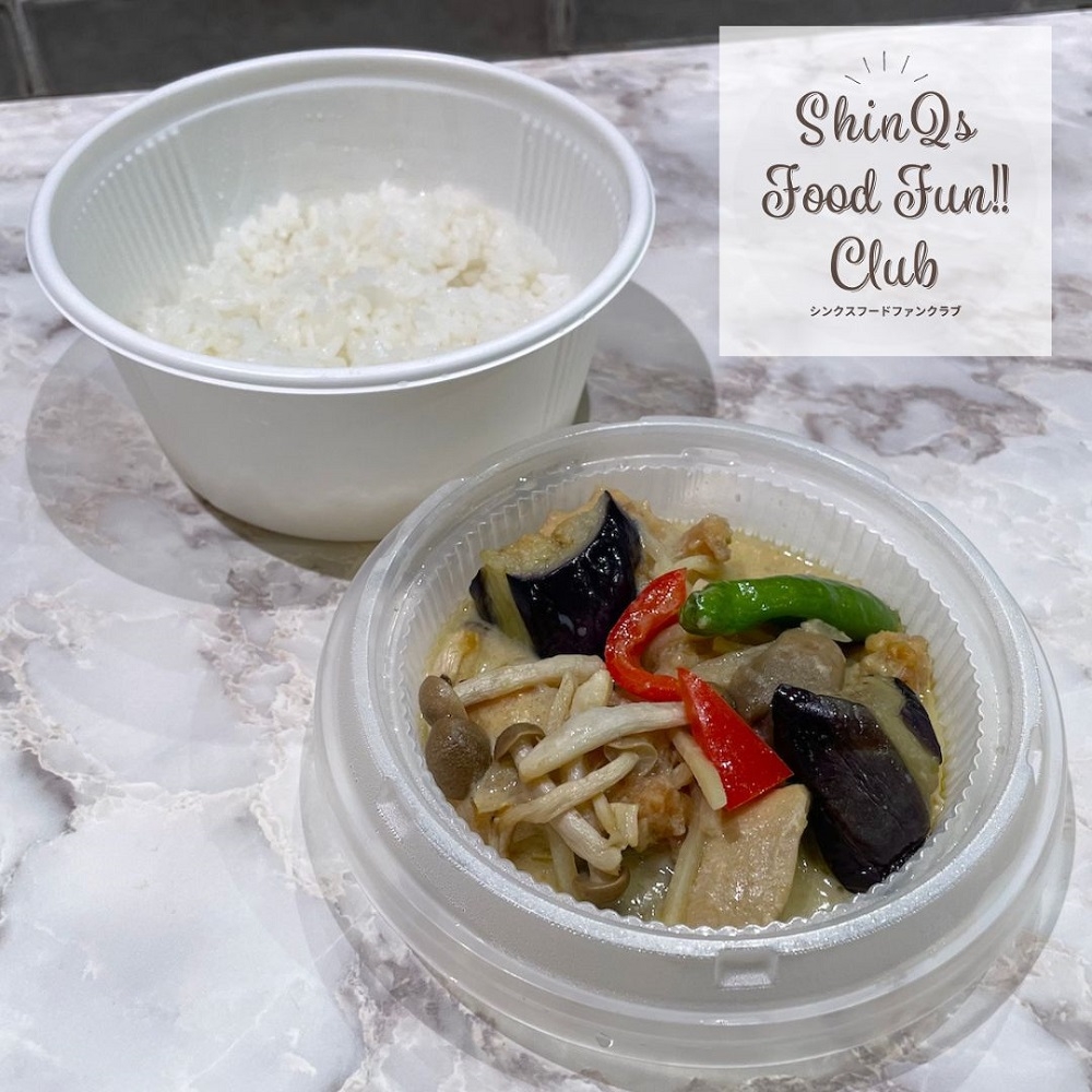 🥥 ココナッツミルクなしでもOK! , 引っ越し荷物の奥から発見したグリーンカレーペースト。,ココナッツミルクがない でも作りたい!そんな時は豆乳+きな粉パウダーで代用。,冷凍茄子&大豆、かぼちゃ、豚肉で作ったら、まろやか&ピリ辛でしっかり美味しい✨, 玄米ごはんと塩麹きゅうりで、ヘルシー満足カレーに🍛,冷凍ストックと常備調味料で作る、暮らしに寄り添うエスニックメニューです。,。