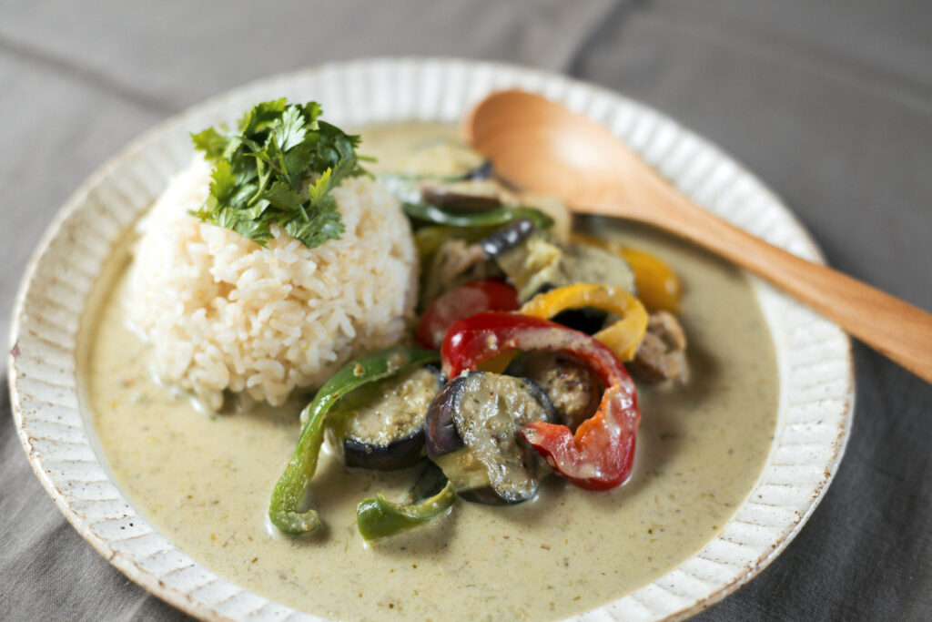 夏野菜たっぷり!シュリンプグリーンカレーのレシピキッコーマン豆乳。