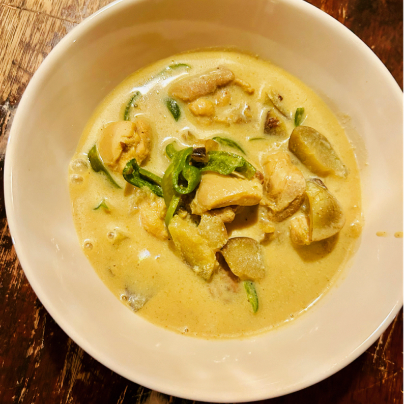 いつものカレーに飽きたら! 鶏むね肉の和風グリーンカレー煮。