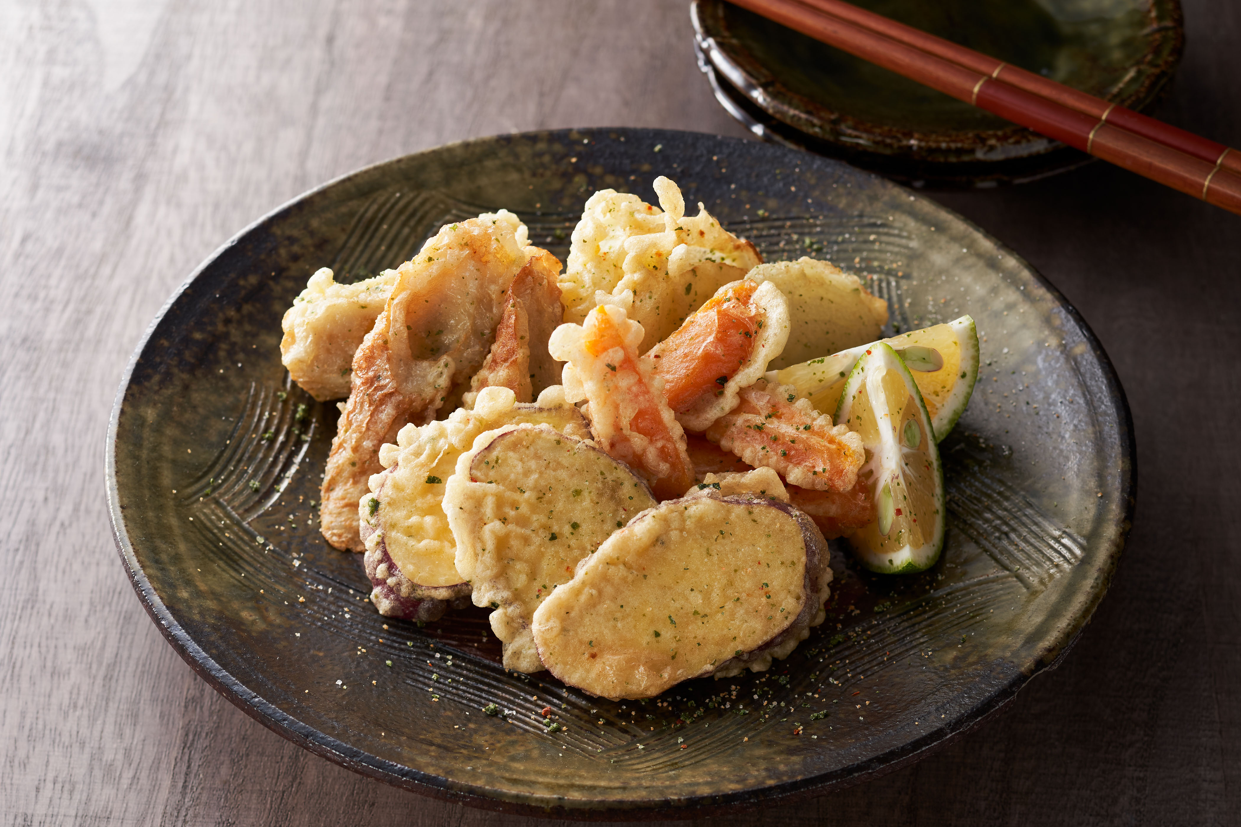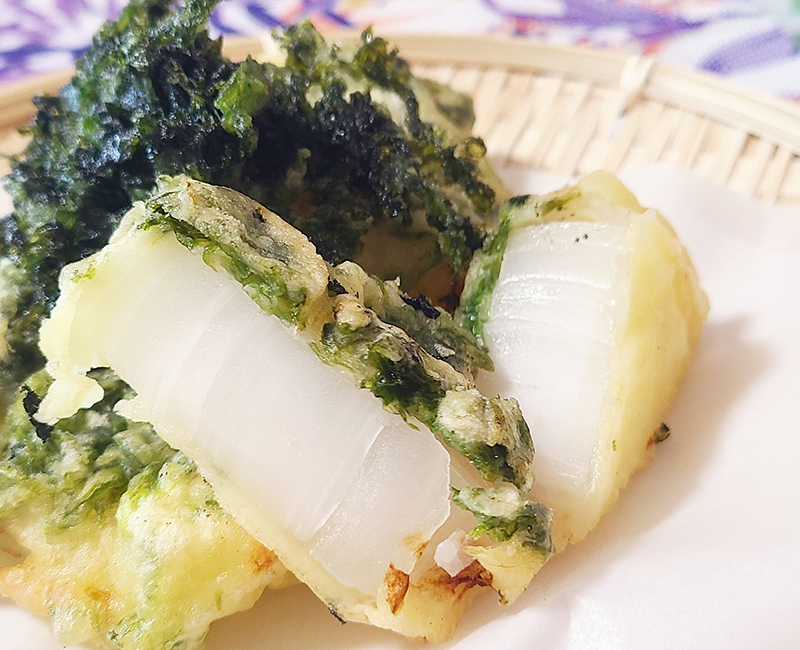 アオサと新玉ねぎの天ぷらお料理レシピユワキヤ醤油・味噌大分。