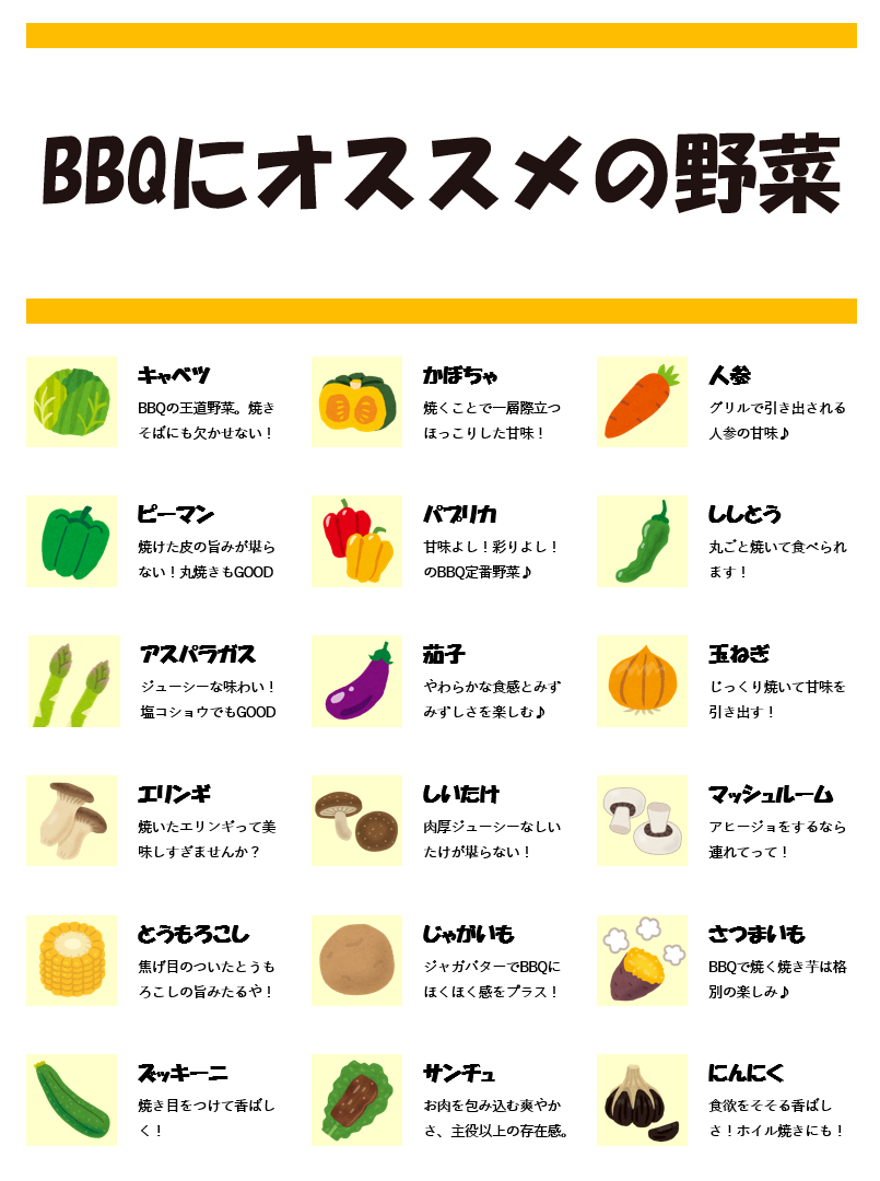 25選 バーベキューで間違いなくウマい野菜を総まとめ!下ごしらえ不要のおすすめ食材も - ハピキャンキャンプ・アウトドア情報メディア。