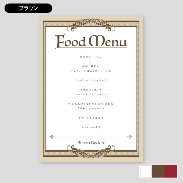 フランス料理1飲食店用メニュー印刷のロケットプリント。