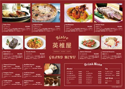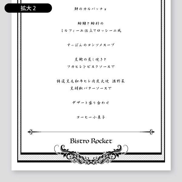 フランス料理2飲食店用メニュー印刷のロケットプリント。