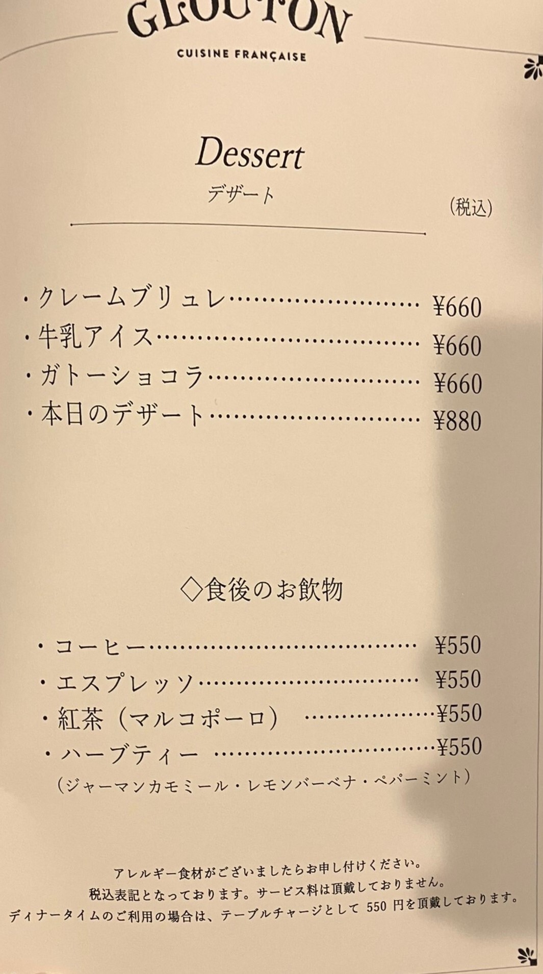 メニュー表 - 蒜山のフランス料理店 グリーンゲイブルス。