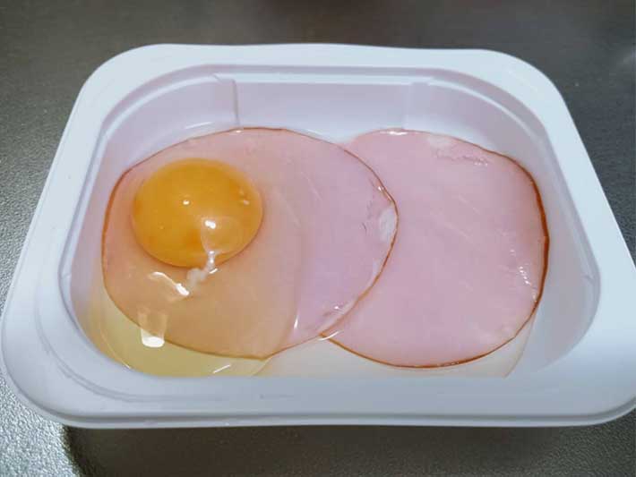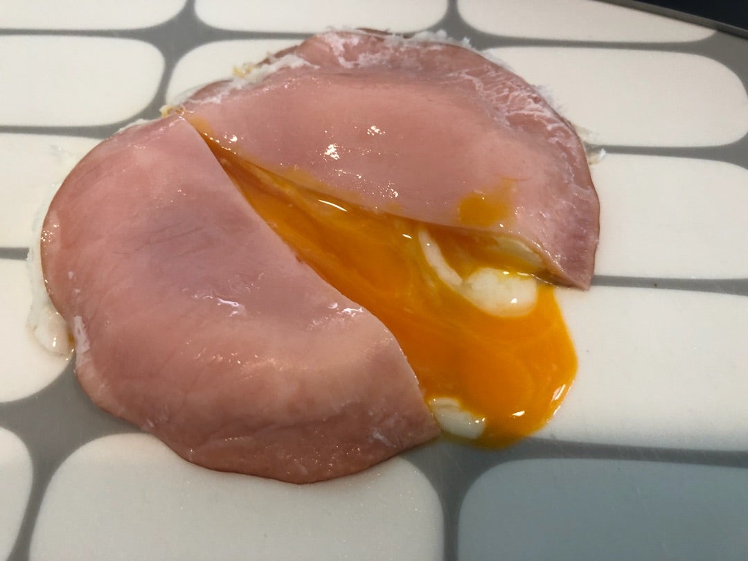 最速ハムエッグ フライパンより美味くて早い!レンジにでジューシーに仕上げます!卵とハムだけ。