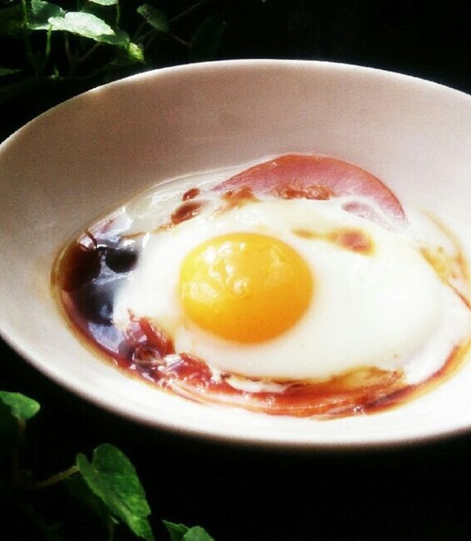 ハムエッグをレンジで作る!加熱時間や爆発させないコツを伝授!食・料理オリーブオイルをひとまわし。