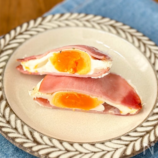 レンジで1分20秒cook❤️超〜簡単!!半熟ハムエッグriyusa日和。ザッパレシピで褒められおやつと時々おかず。