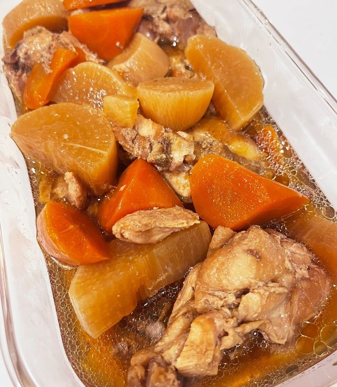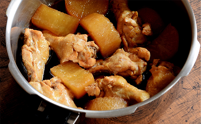 ゼロ活力なべだから引き出せる濃い旨み鶏手羽元と大根のこっくり煮。