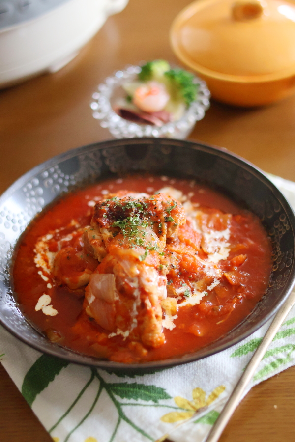 鶏肉のトマト煮オリジナルレシピ電気圧力鍋 KPC-MA4アイリスオーヤマ。