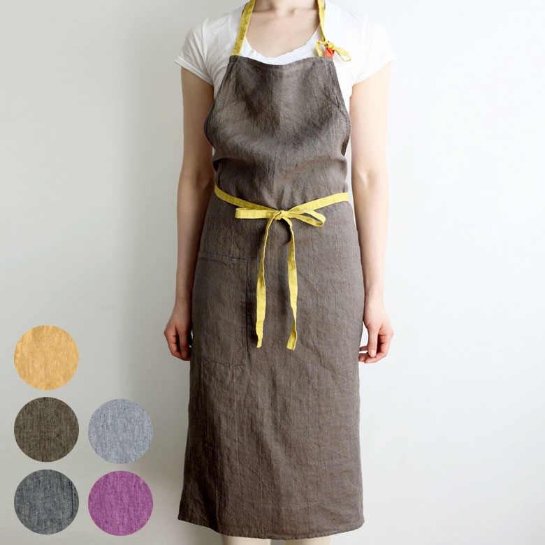 エプロン 長め リネン グレー イエロー ブラウン パープル ブルー90201-gy 90201-ye 90201-br 90201-pu90201-blLino e lina 100cm フルエプロン シンプル 麻 おしゃれバリ島直輸入!アジアン雑貨・家具の通販 アジア工房 本店。