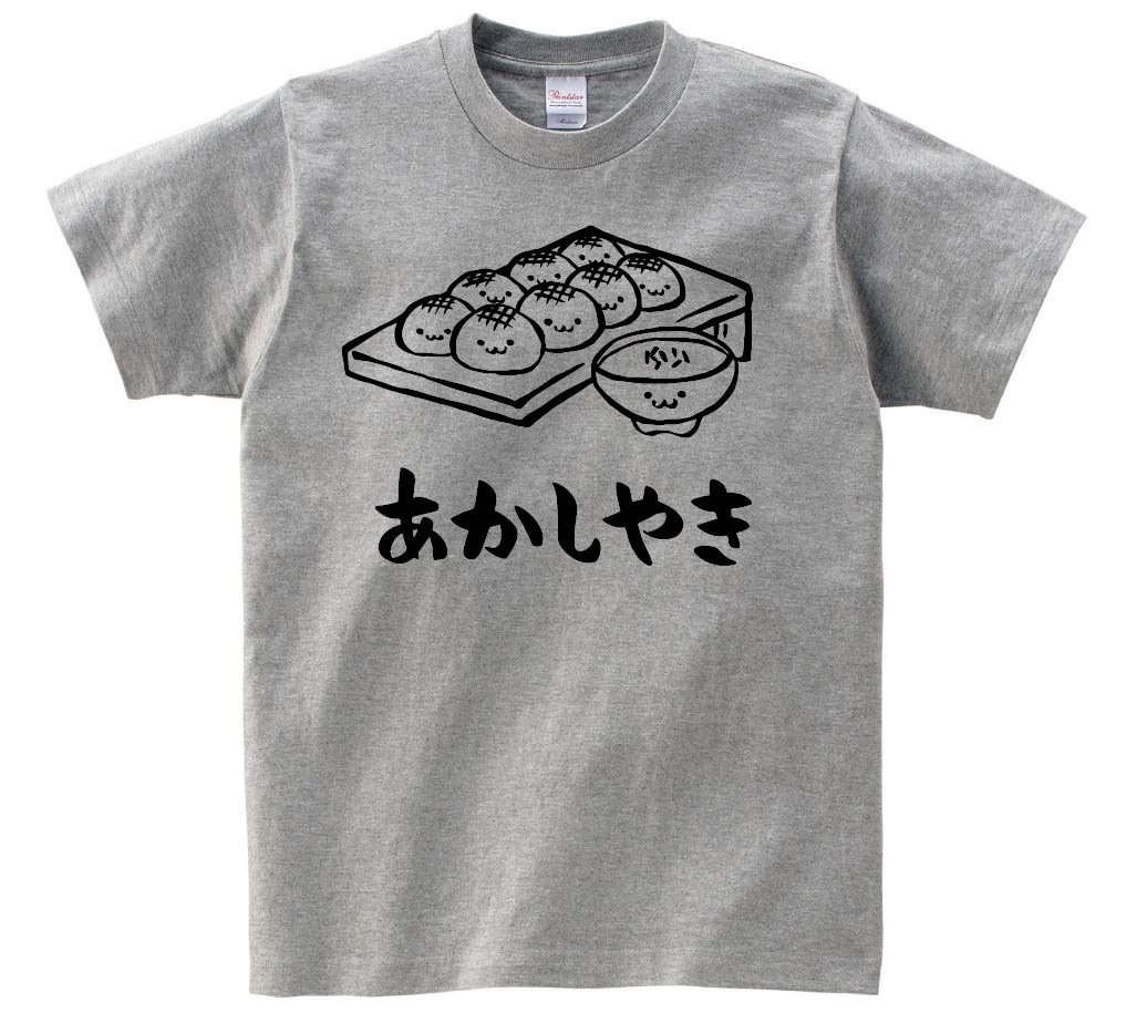 あかしやき 明石焼き 玉子焼き 粉もの 食べ物 筆絵 イラスト カラー 長袖Tシャツ屋台サモエスキ。