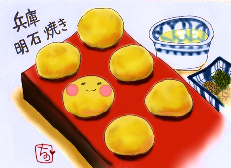 今日のイラスト 地域特産メニュー♪兵庫☆明石焼き♪世界中☆1分でハートに伝わるキャラクター&4コマ漫画♪。