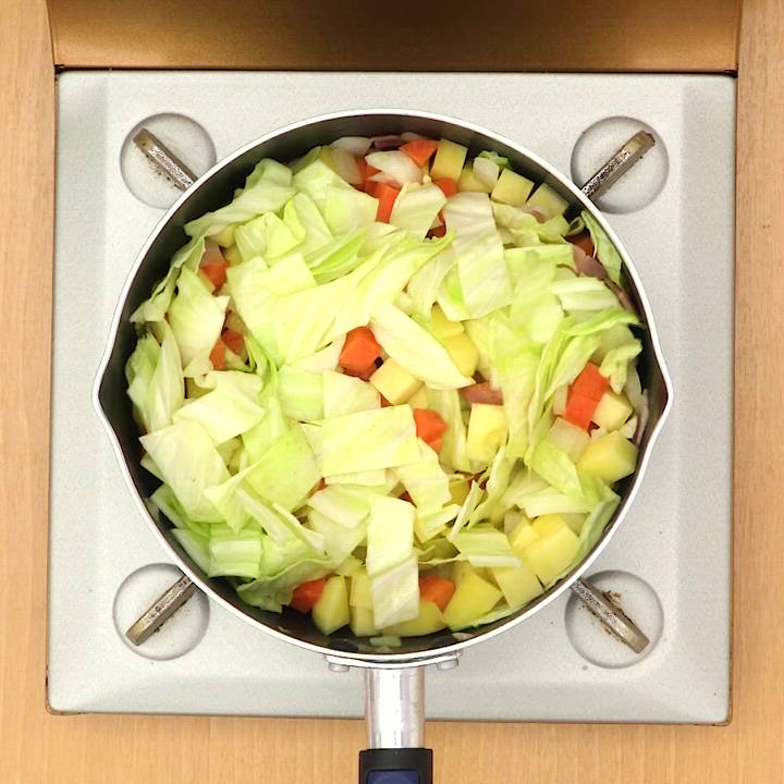 レストランで教わったおいしいミネストローネ✨, ◾️どんなことでもコメントしてもらえると嬉しいです☺️,材料 4〜5人分,ベーコン150g, ニンニク1片, じゃがいも1個, にんじん1 2個, 玉ねぎ1 2個, キャベツ1 4個,ミックスビーンズ100g, カットトマト200g 1 2缶 , ローリエ1枚,。