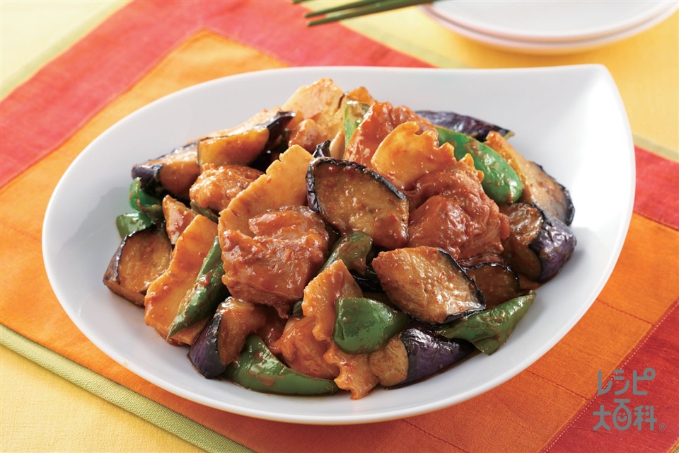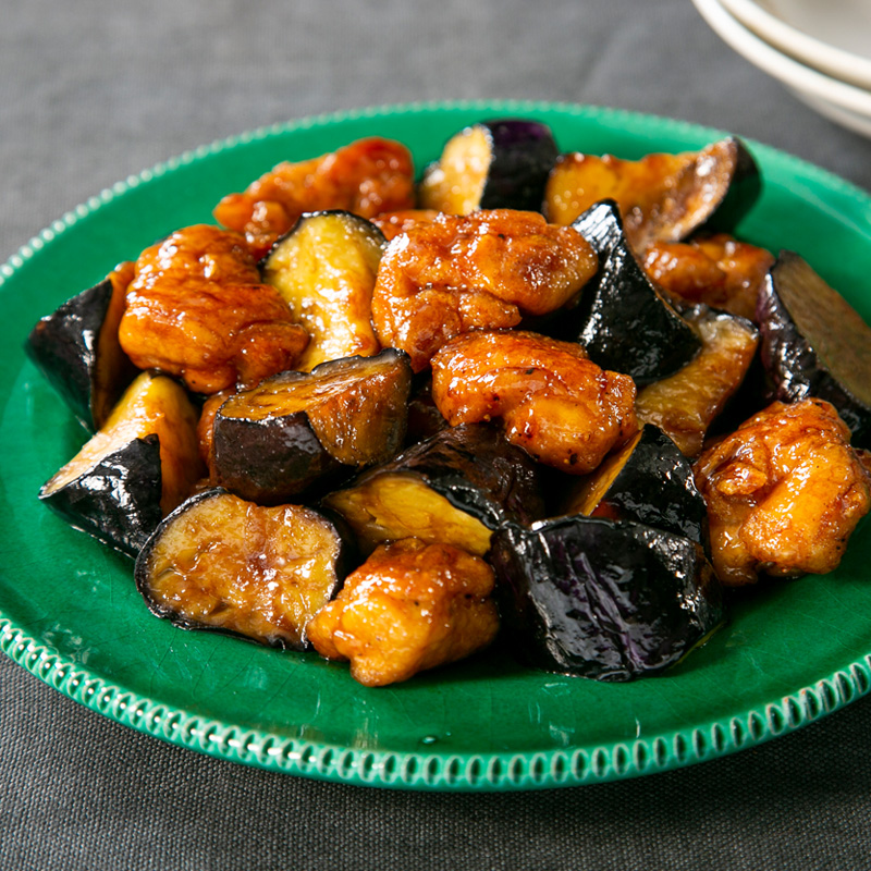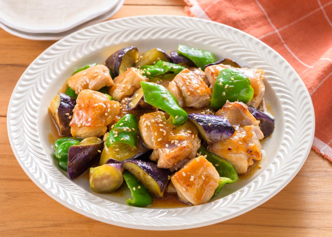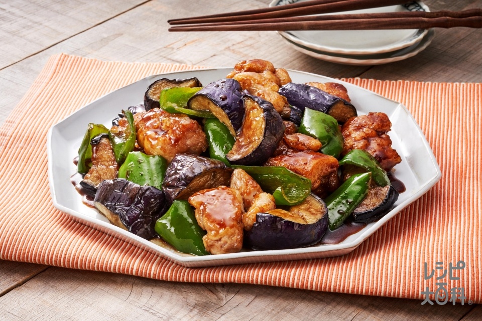 揚げ茄子と鶏肉の中華炒めの献立 副菜:ピリ辛もみキャベツ、汁物:ちんげん菜と舞茸の中華スープ 献立・メニュー 味の素パーク たべる楽しさを、もっと。