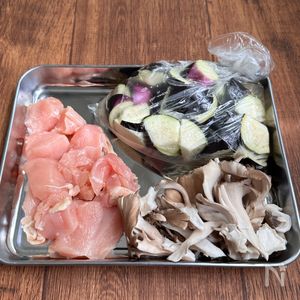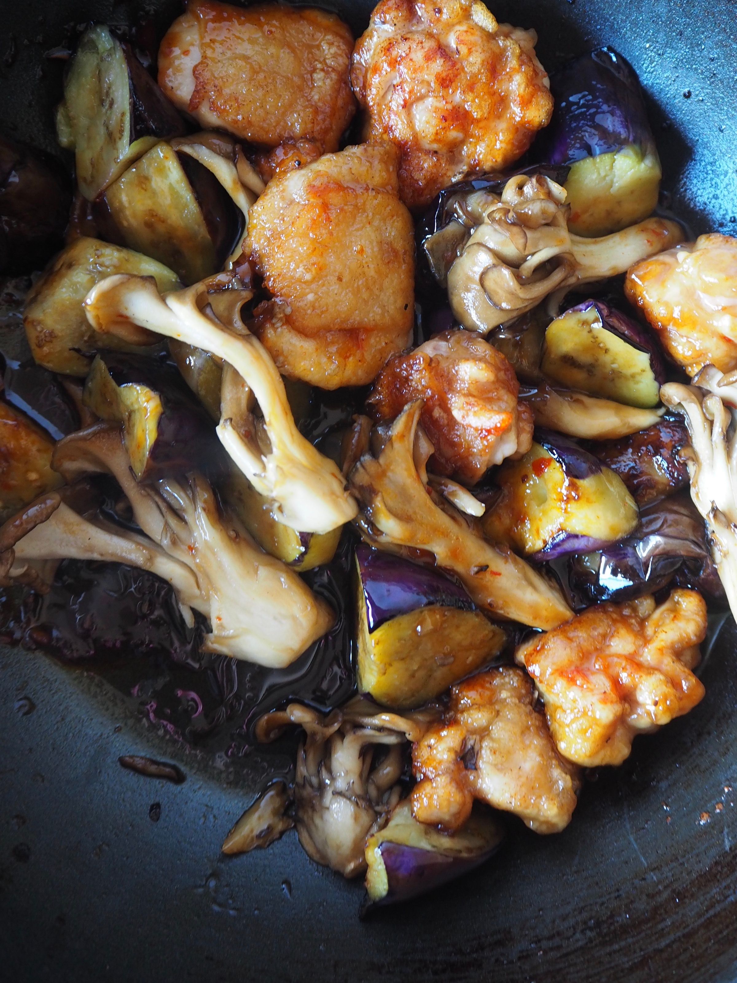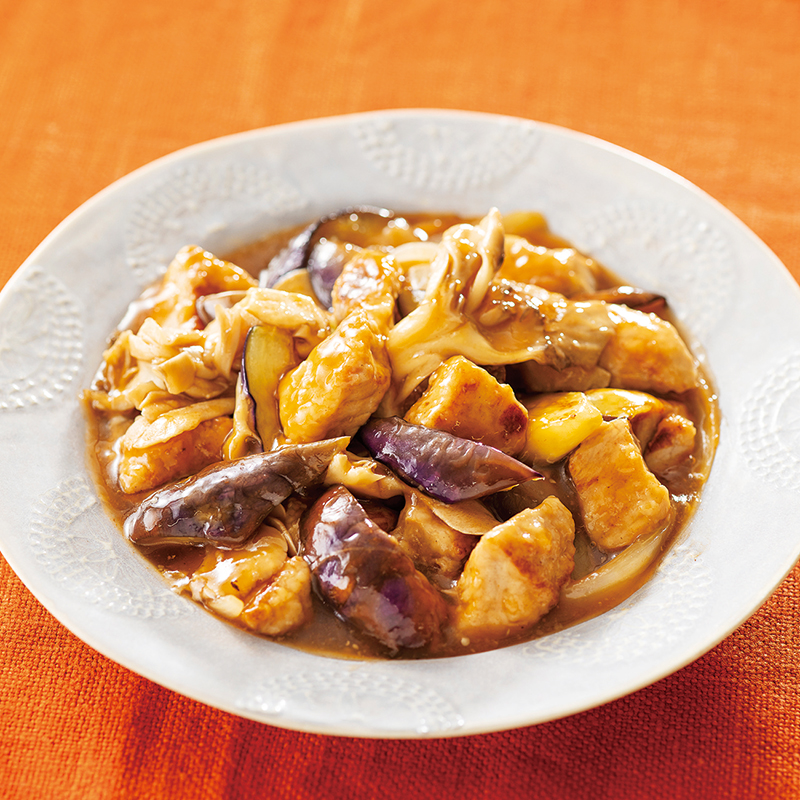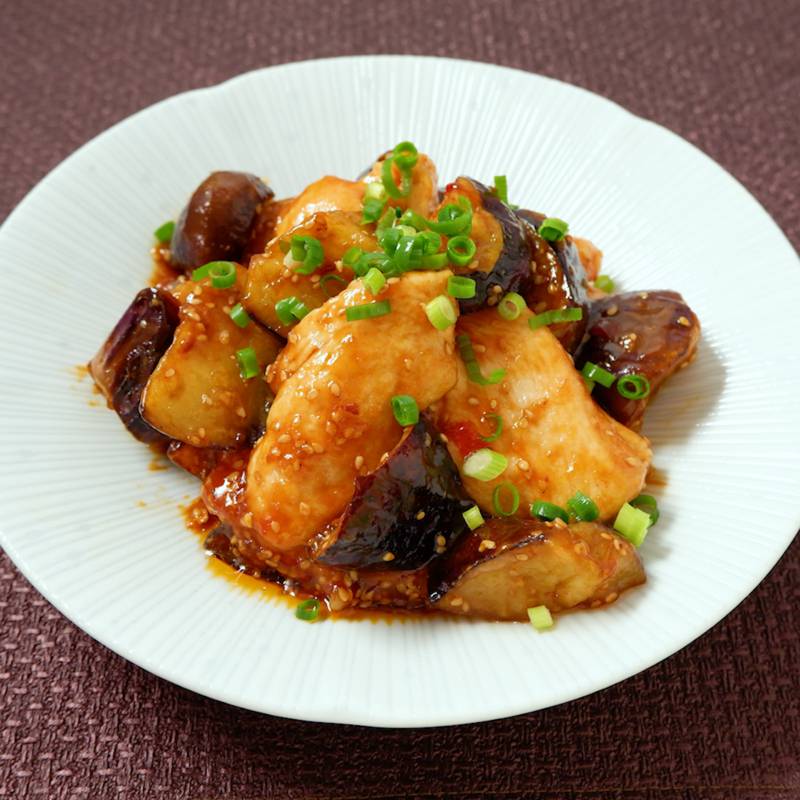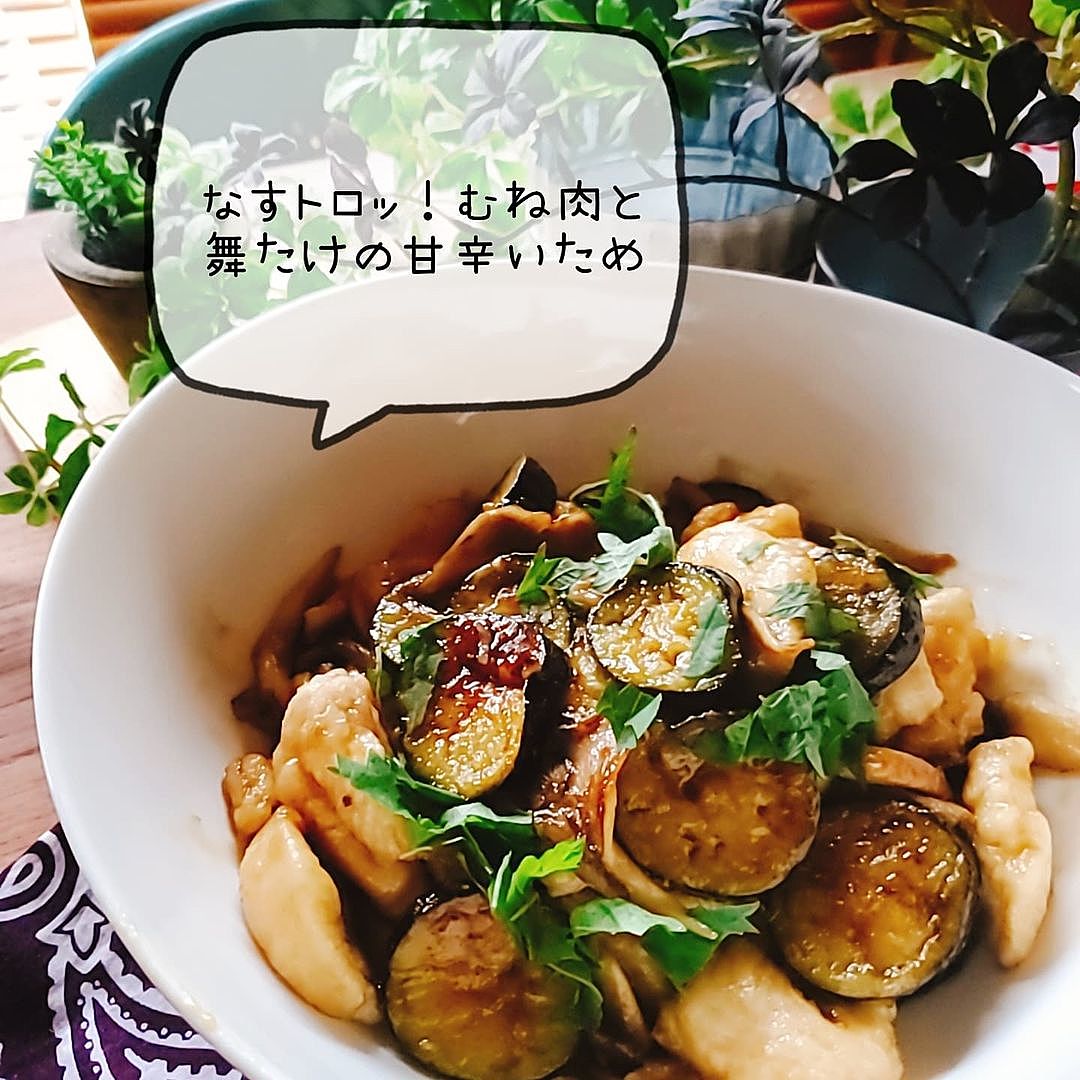 むね肉1枚大満足 とろとろ茄子と鶏肉、きのこのスタミナ炒め。