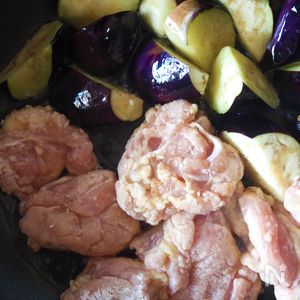 鶏肉と茄子の甘辛しょうが醤油炒め 茄子がとろん♡。