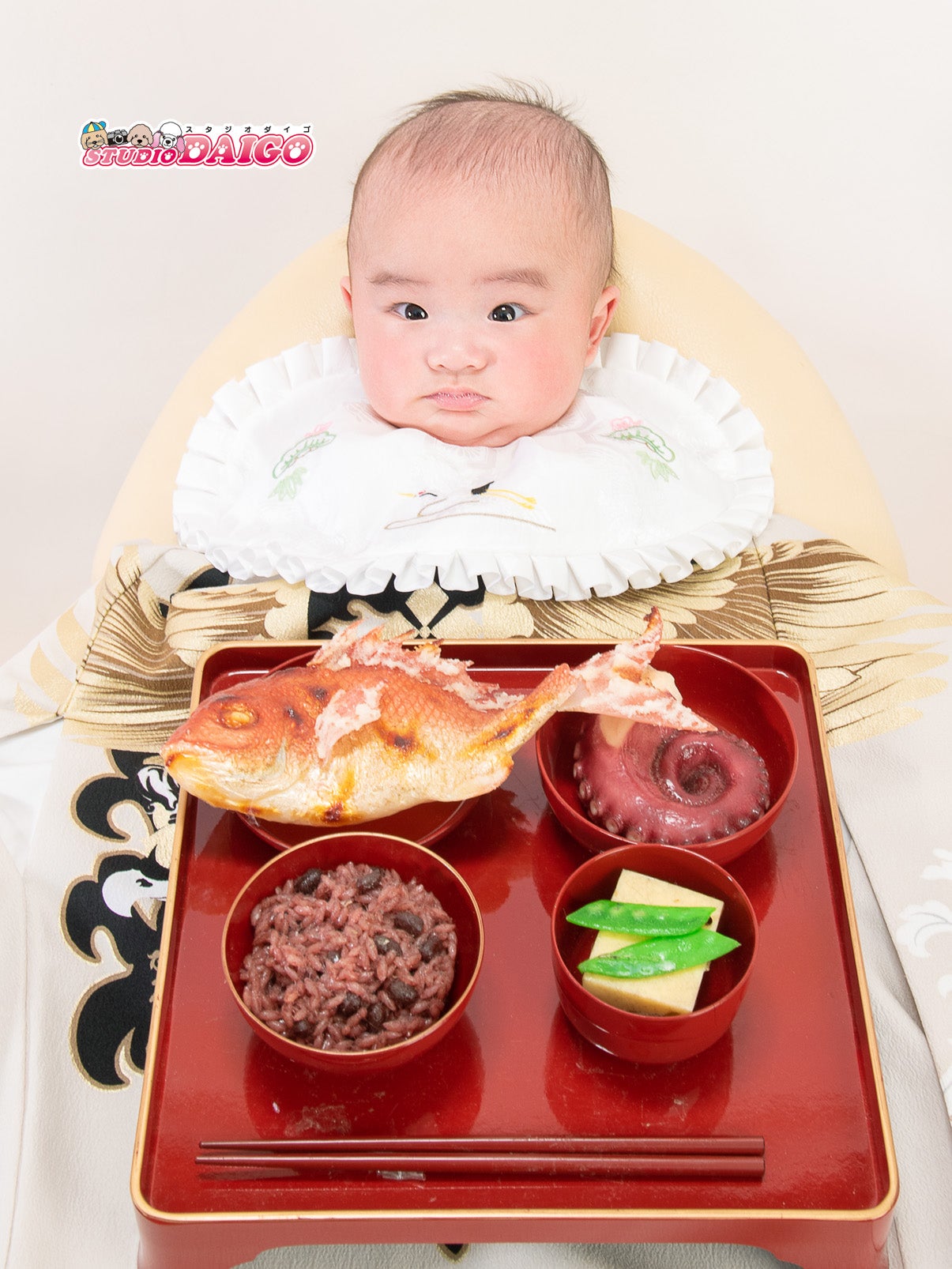 産まれてきてから100日経ちました。お食い初めのお膳はタコにタイにお赤飯!!何から食べる?京都 滋賀の写真館 貸衣裳 スタジオ醍醐。