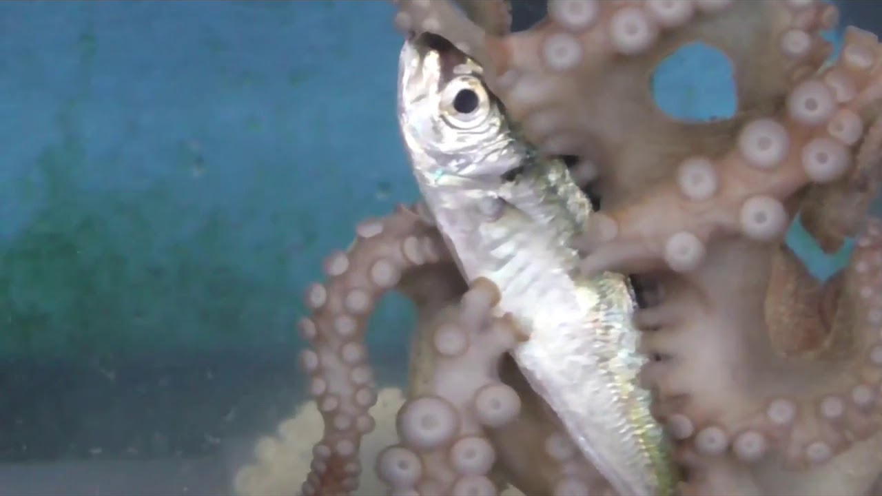 イカ・タコ飼育編 ヒョウモンダコの稚ダコにエサをあげてみた。