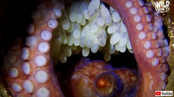タコのお母さん「みんな元気に大きくなるのよ!」と、卵の中の赤ちゃんたちを大切に見守り続ける つぶつぶ注意: マランダ。