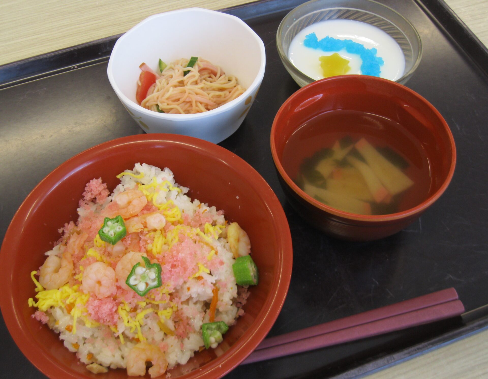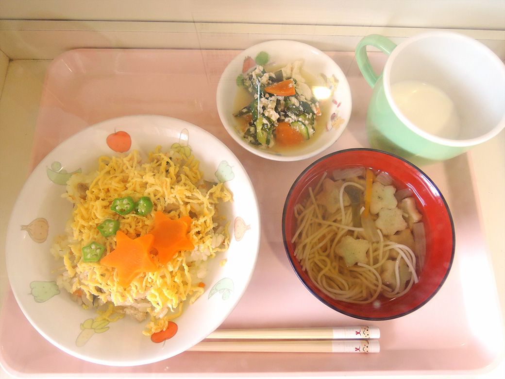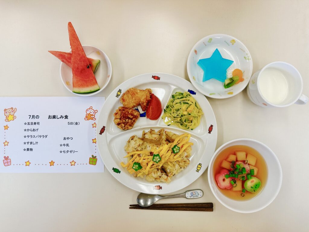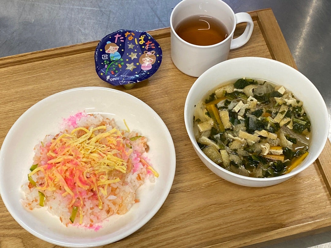 💫給食💫 七夕🎋メニューはちらし寿司⭐️でしたアルシュ多賀城保育園保育園給食七夕メニュー子どものごはん七夕ちらし寿司七夕 そうめん。