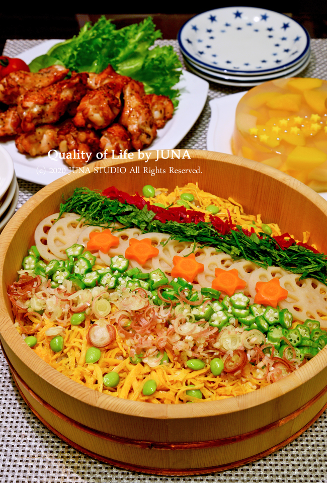 七夕献立 星に願いを☆カービィちらし寿司と春雨サラダに七夕汁行事食百花。