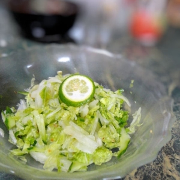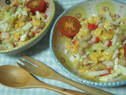 白菜と蒸し大豆のサラダ・すだち風味超簡単!うさうさレシピ。