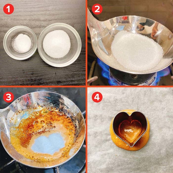 イカゲームで話題「型抜きカルメ焼き」の作り方。ダルゴナをフライパンと材料2つで。
