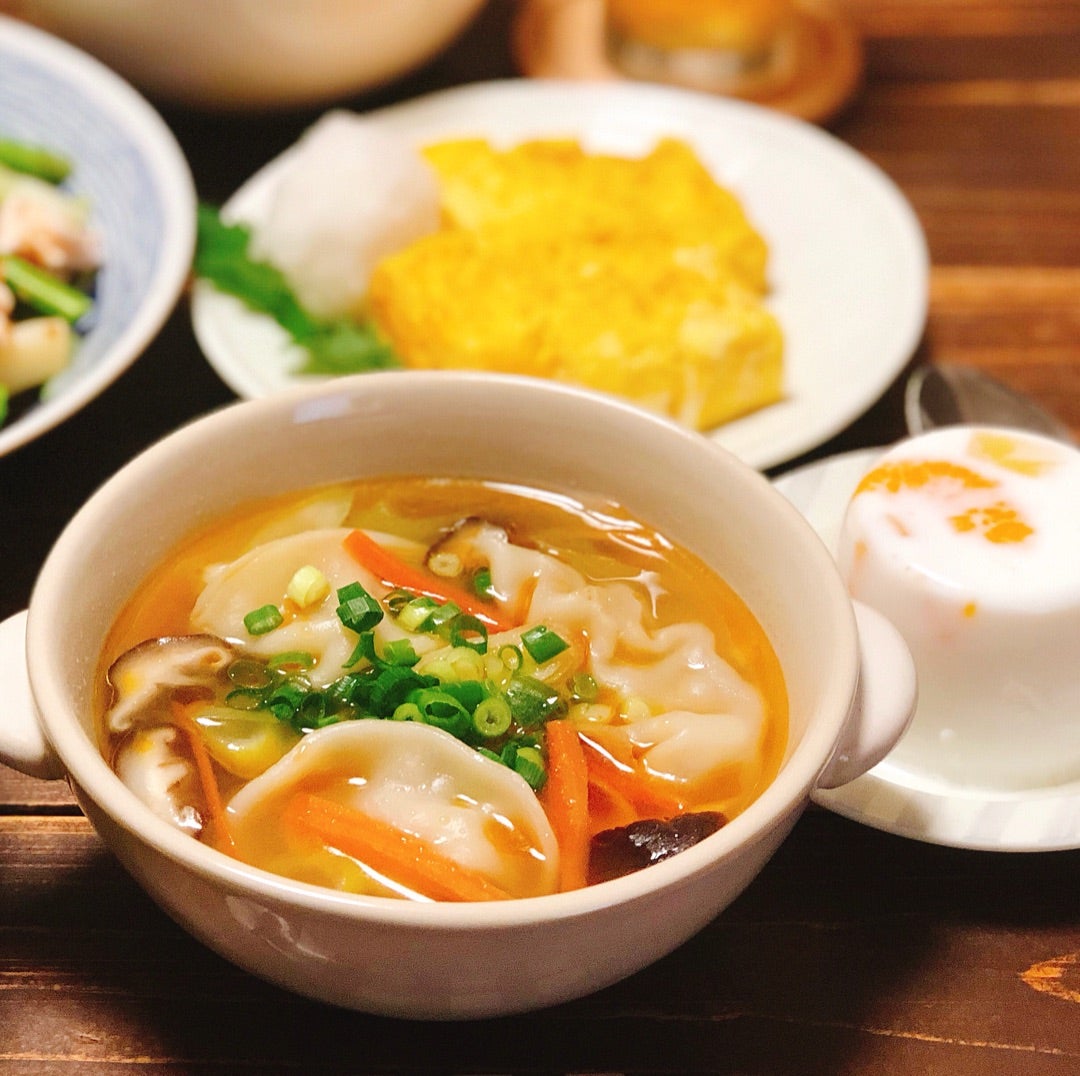 鶏出汁が出たササミの茹で汁を活用!野菜も入れて、具沢山の餃子スープは、しっかりおかずになる!ゆうき酒場。