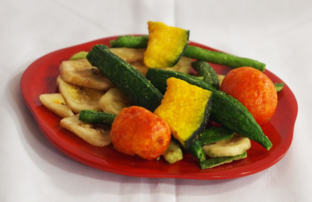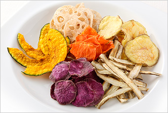 揚げないのにサクサク!フルーツと野菜チップス4種。
