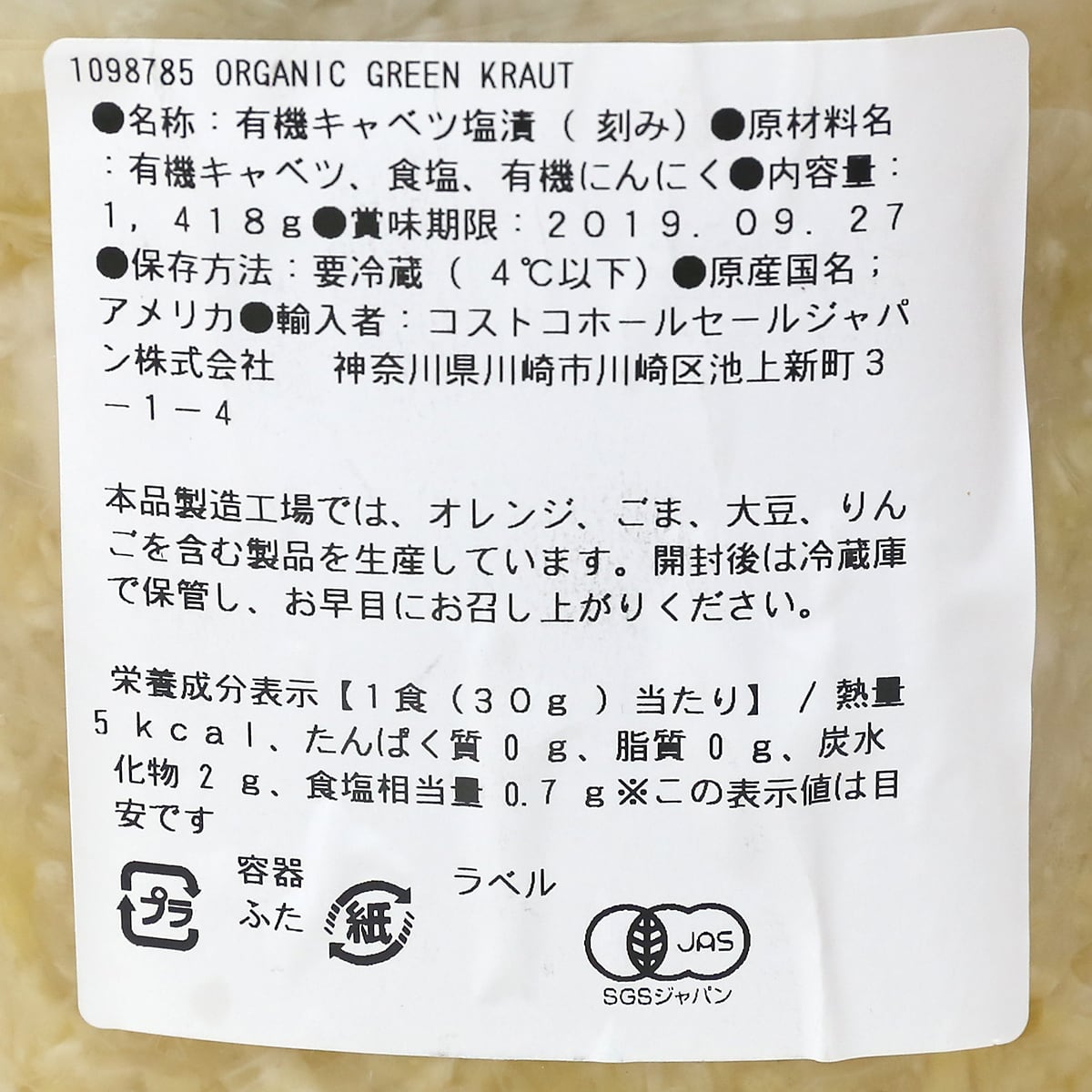 コストコのオーガニックザワークラウトはお酢は使わずに発酵させる伝統製法で素朴な味わいが楽しめる!│TASTY TIME テイスティータイム。