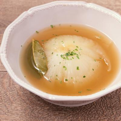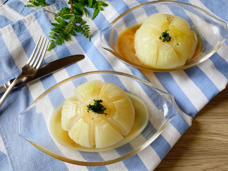 レンジでとろとろに♪ 丸ごと新玉ねぎの和風スープ煮。