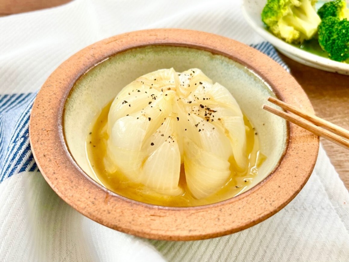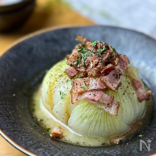 新玉ねぎの丸ごとレンジ蒸し ベーコンコンソメバター。