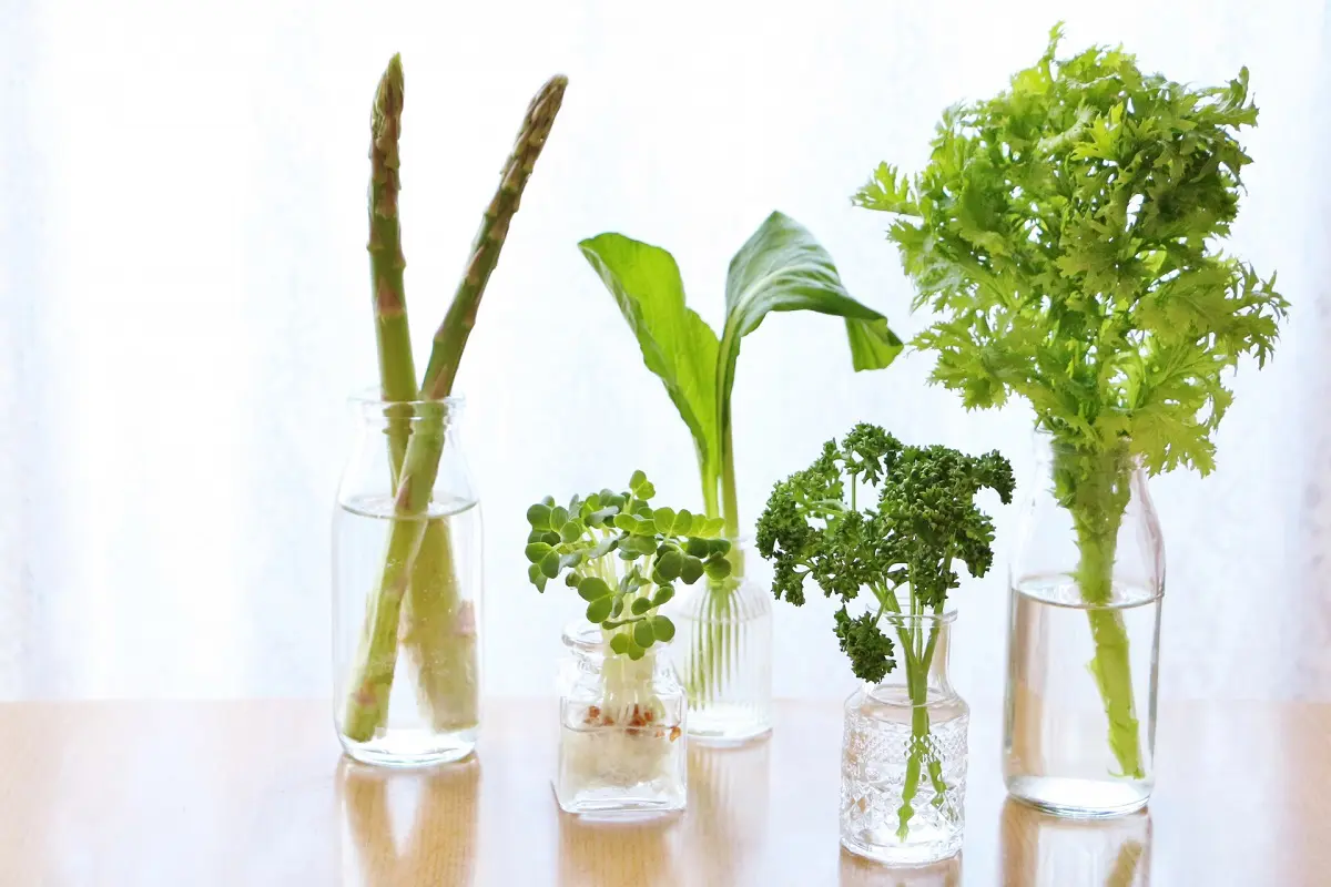 キッチンで楽しむ再生野菜 リボベジ の水耕栽培7ステップガイドWOOTANG ウータン 水だけで育てる観葉植物-水耕栽培通販サイト。
