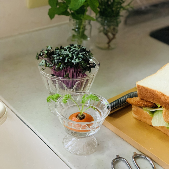 野菜の切れ端、見た目も美しく育てたい! リボベジ専用「リボベジガラス」はどんな野菜も簡単清潔に育てられますPouch ポーチ。