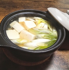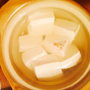 鍋で簡単☆ とろろ昆布を添えて♪ おつまみ湯豆腐花ぴーのあてレシピ。