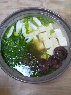 朝ごはん とろろ昆布に菜の花の湯豆腐 : おやじ厨房に入る。