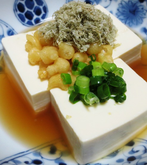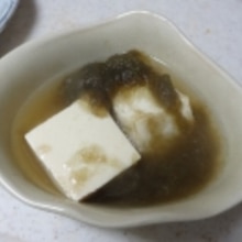 696 とろろ昆布と揚げ玉の湯豆腐 : 家飲みのお品書き。