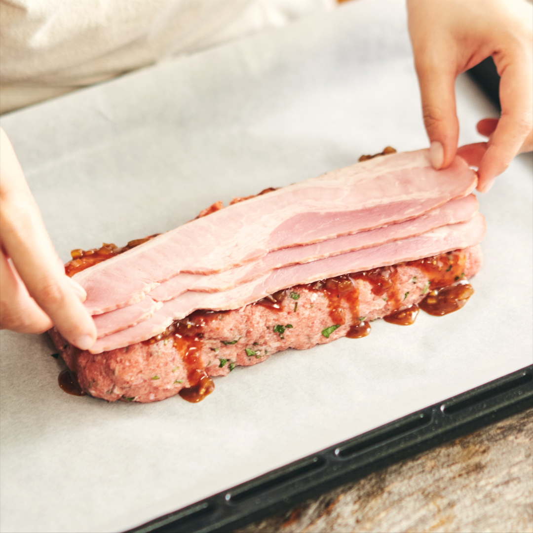 型なしで簡単!豪華見え! 大葉入りベーコンミートローフ。