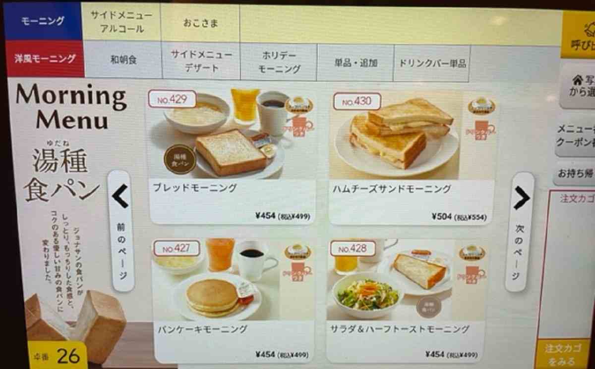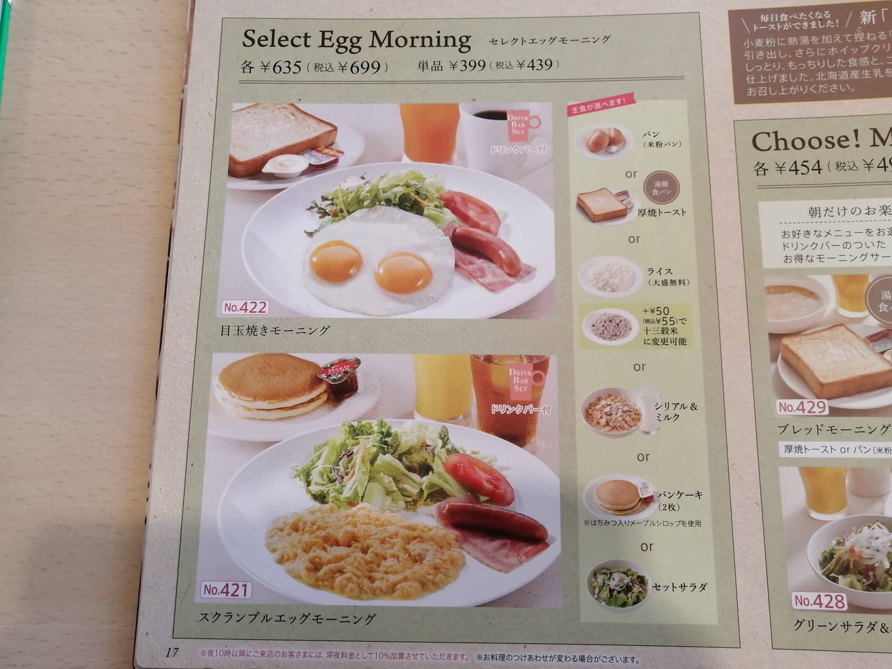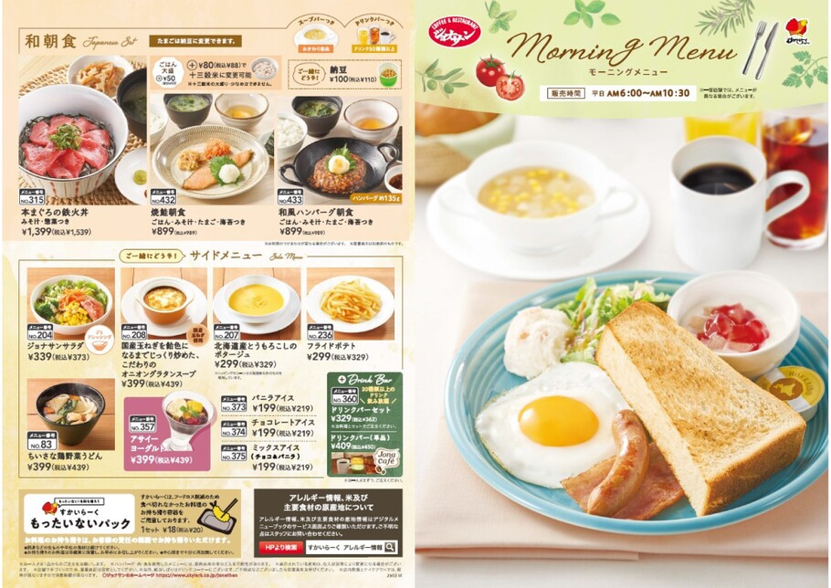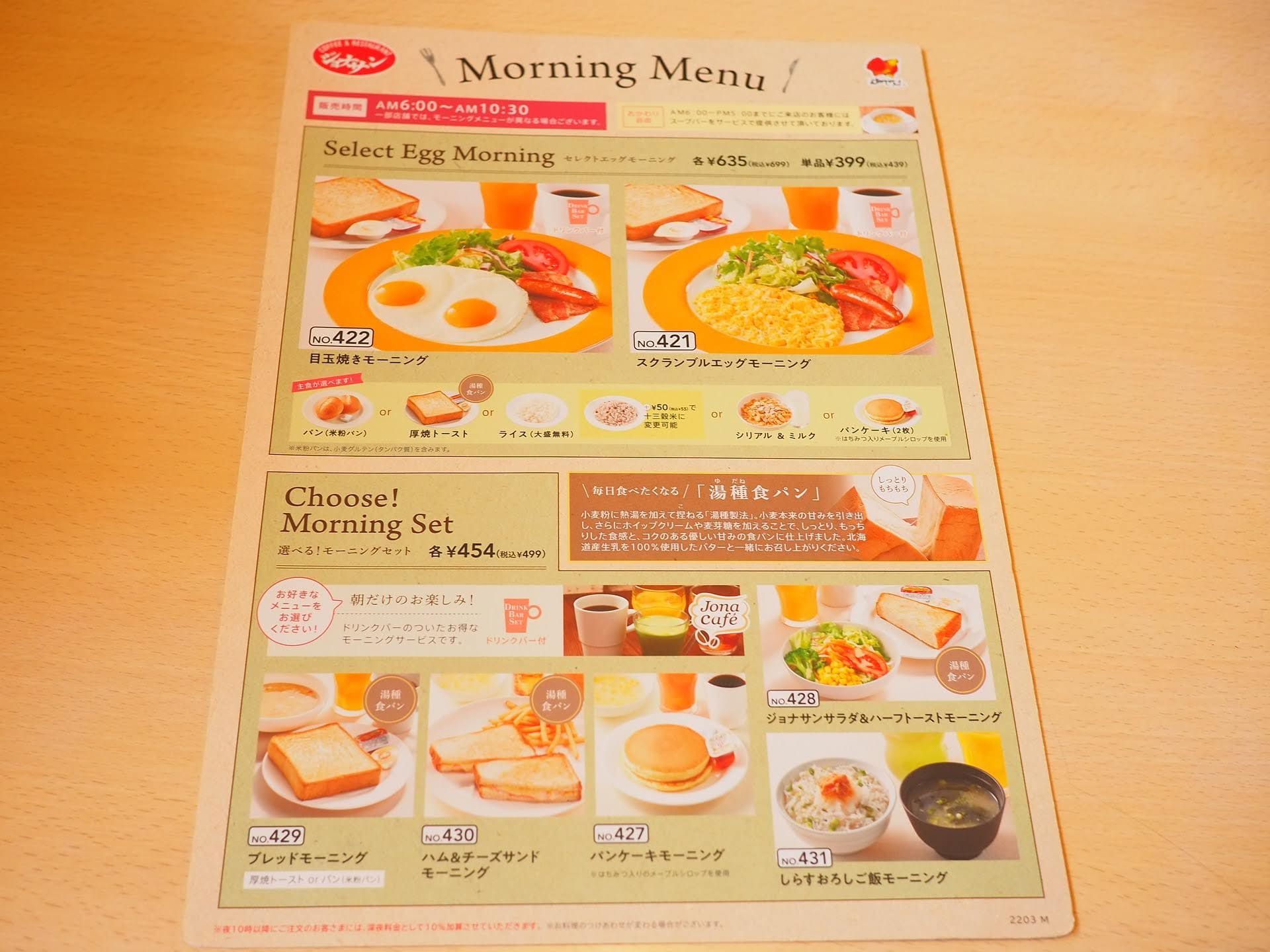 和朝食メニュージョナサンファミリーレストランすかいらーくグループ。