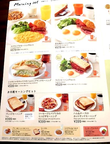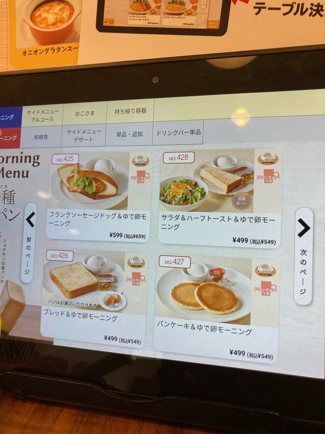 ジョナサン モーニングメニューのカロリー、料金を比較Koichi。