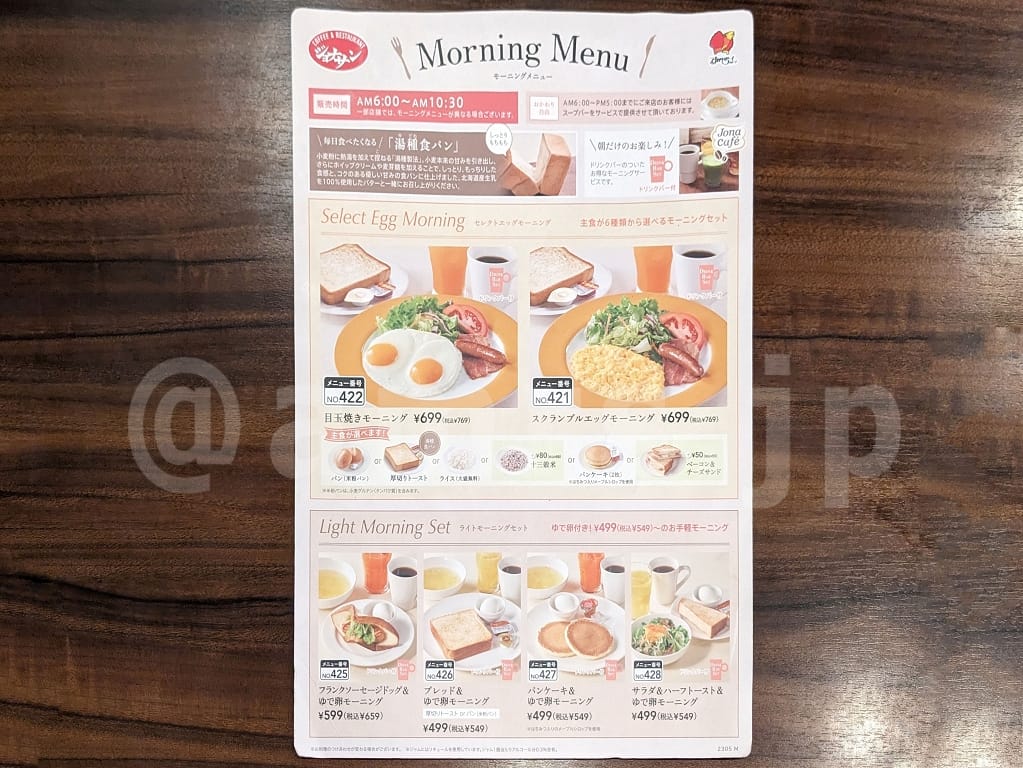 2023年8月最新 ジョナサン 平日モーニングメニュー 価格とカロリーdate-sui.com。