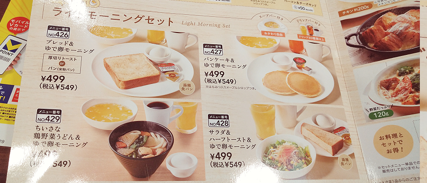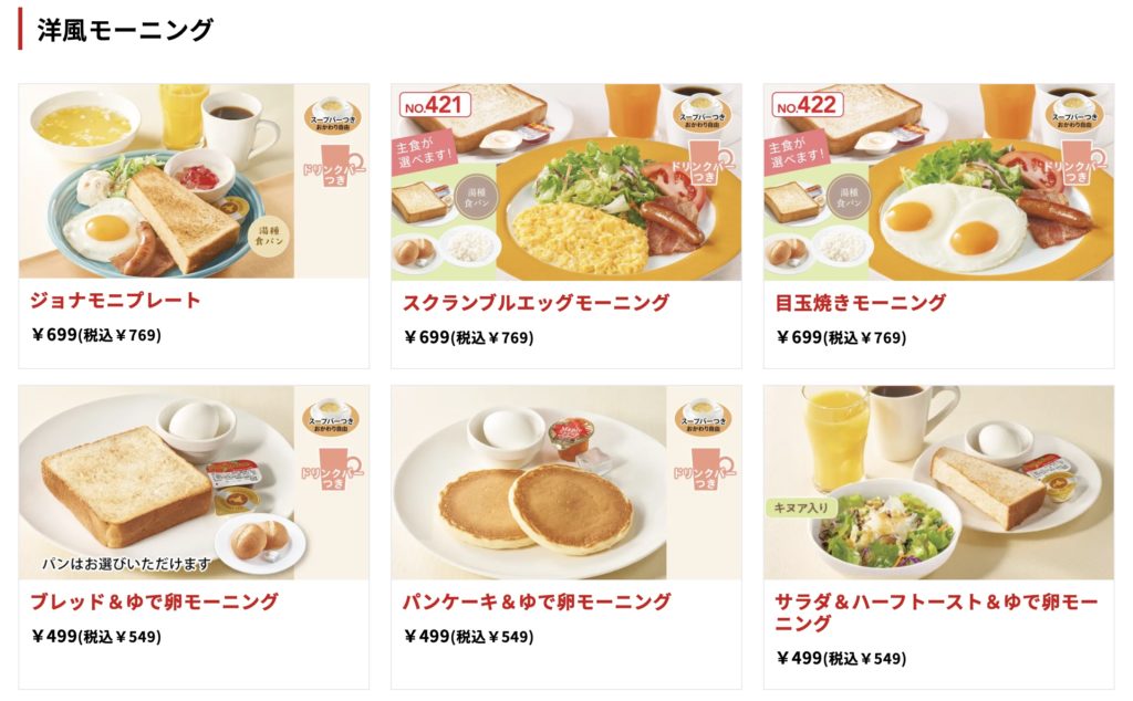 洋風モーニングメニュージョナサンファミリーレストランすかいらーくグループ。