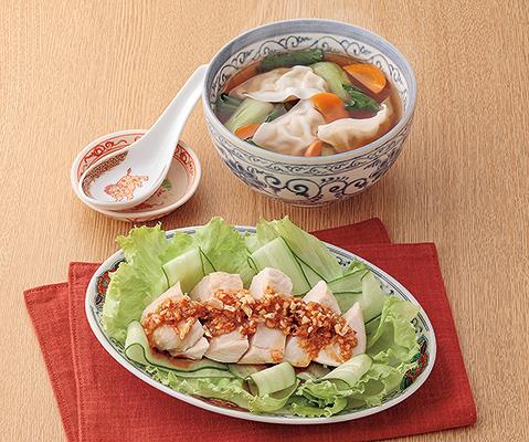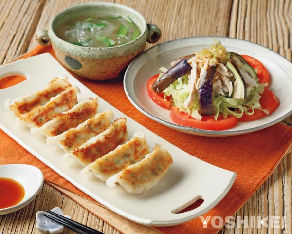 餃子 蒸し鶏となすの香味だれ春雨スープ 食材宅配のヨシケイ 夕食ネット レシピ・メニュー・献立付き。
