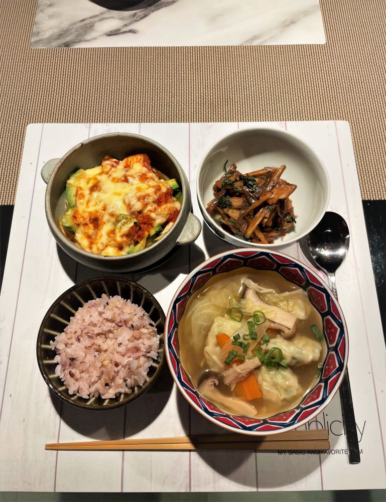野菜もきのこもたっぷり水餃子スープの献立RIESMO'sごはん日記。