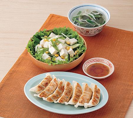 餃子 豆腐サラダわかめスープ 食材宅配のヨシケイ 夕食ネット レシピ・メニュー・献立付き。